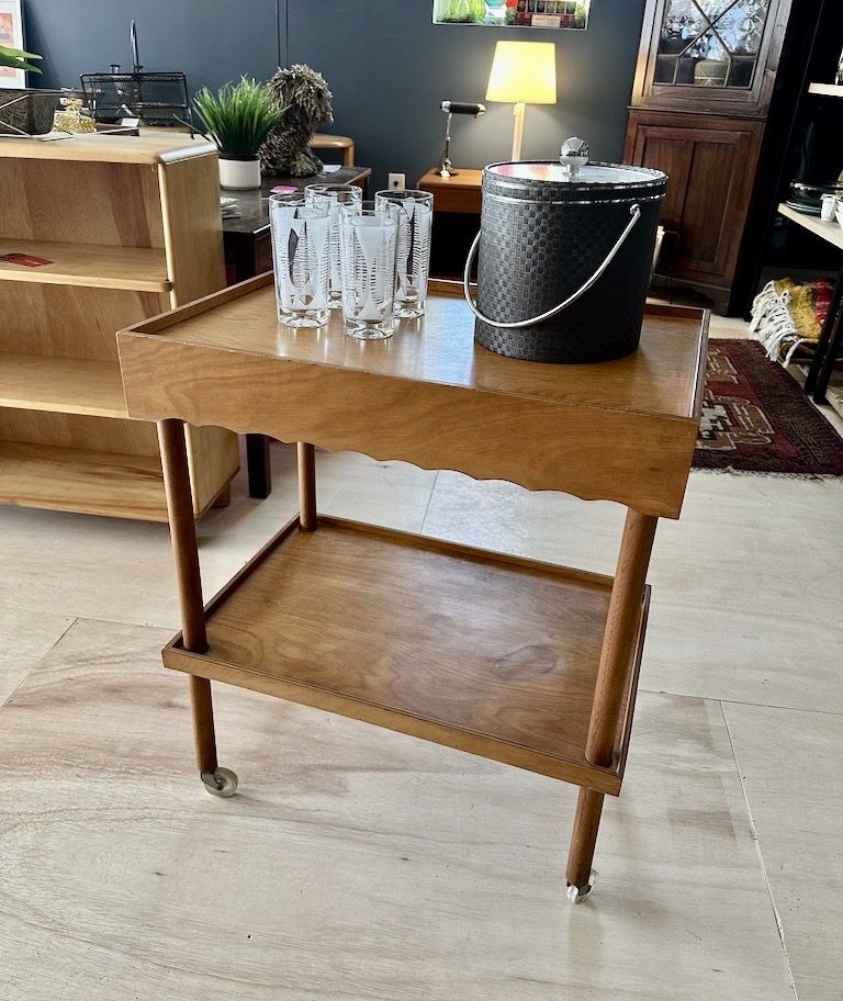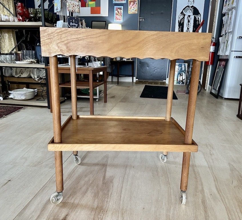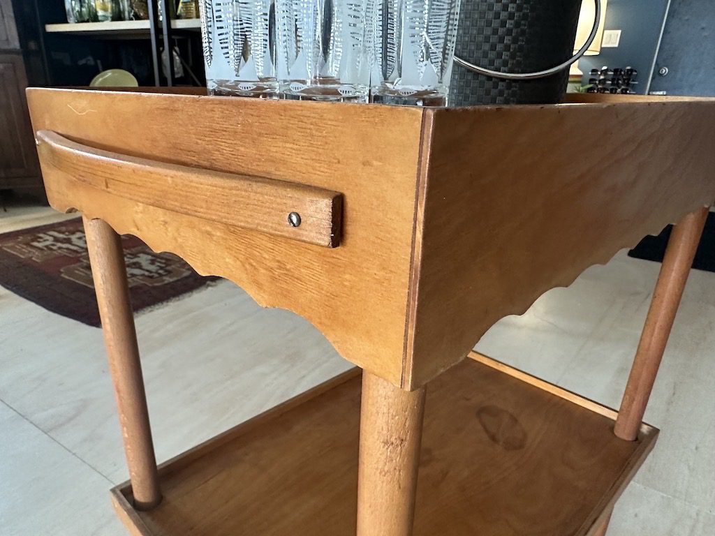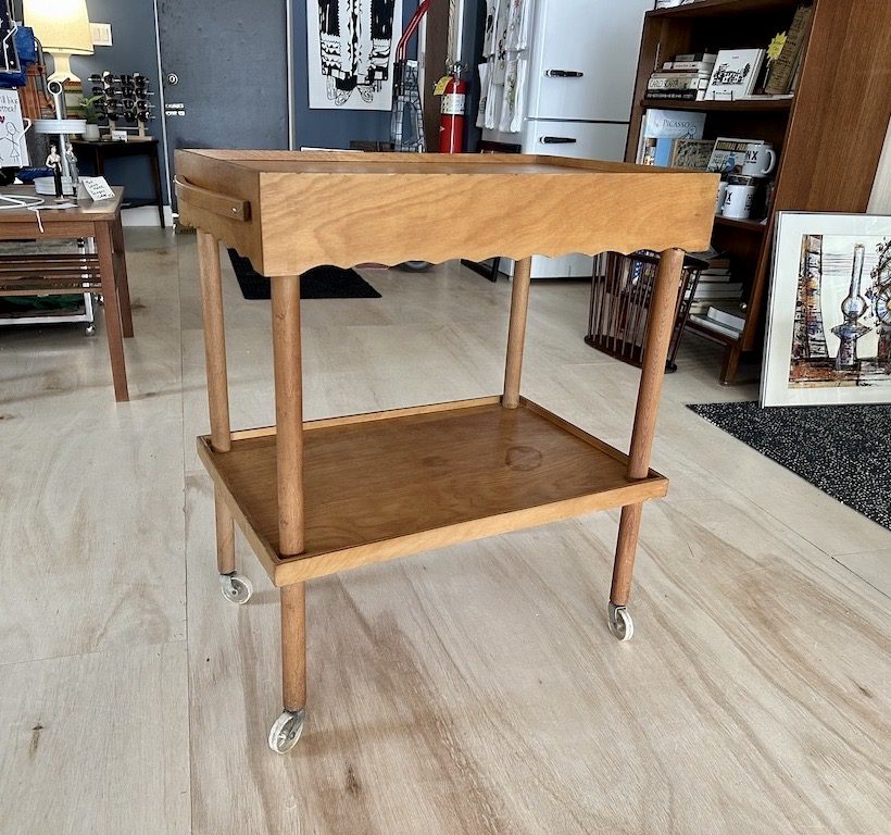 Wooden rolling serving trolley/ bar cart from Sweden.