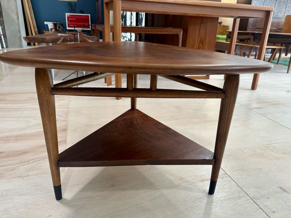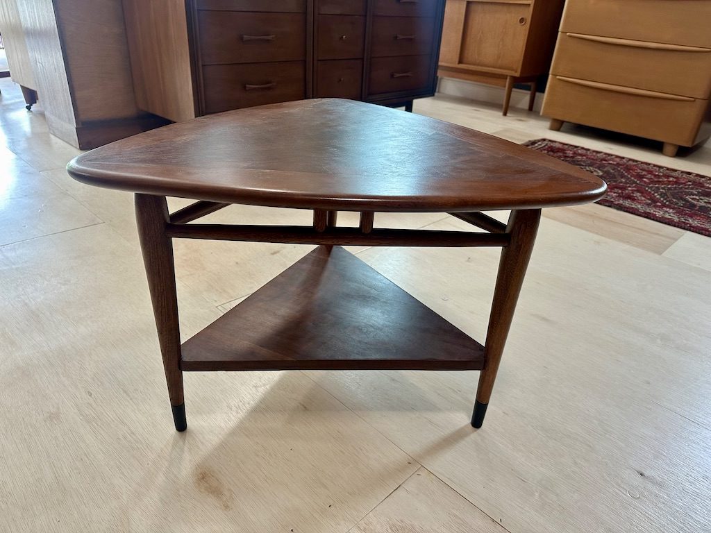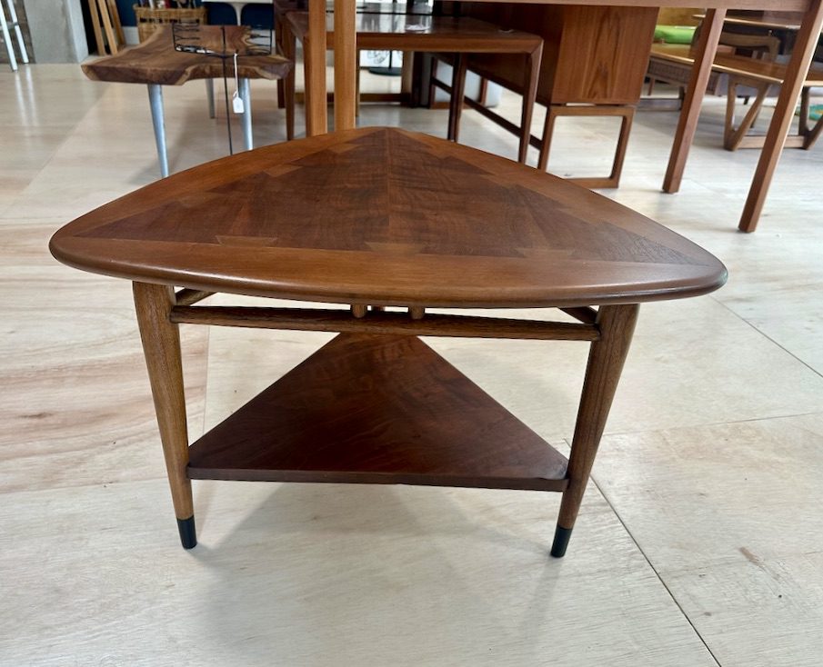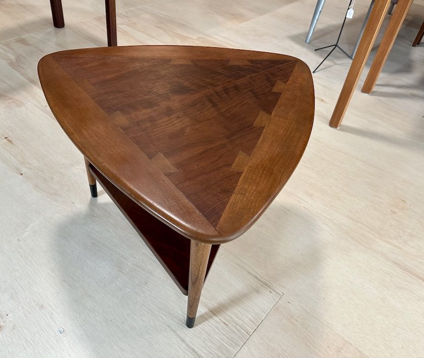 Lane acclaim guitar pick shaped side table in oak and walnut by Andre’ Bus.