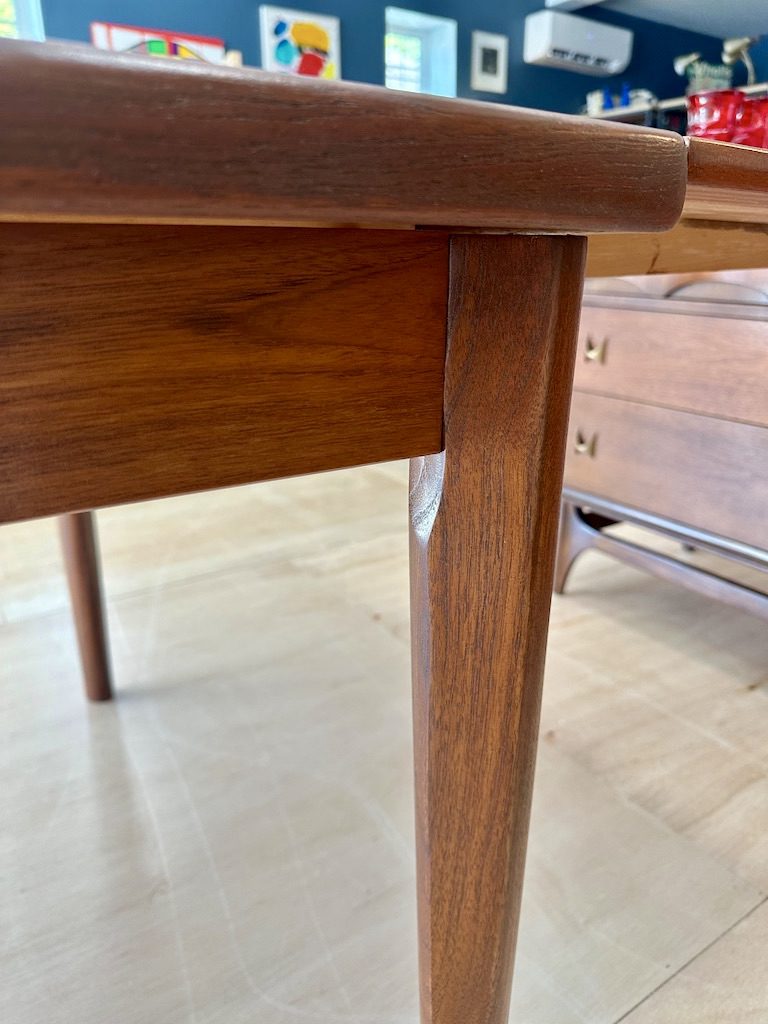 Recently refinished but may still have some slight imperfections from age and use. Overall very good condition, smooth surface with extra coats of clear lacquer for protection.