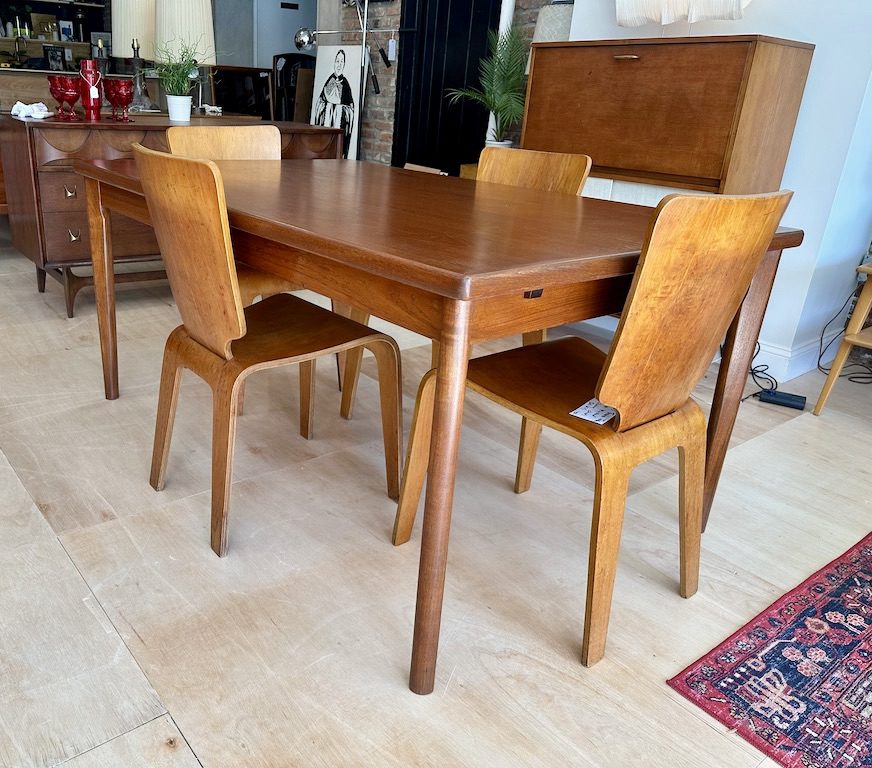 Table opens to 102.5″ long when leaves are out. Table is 39.25″Wide and 28.75″ tall.