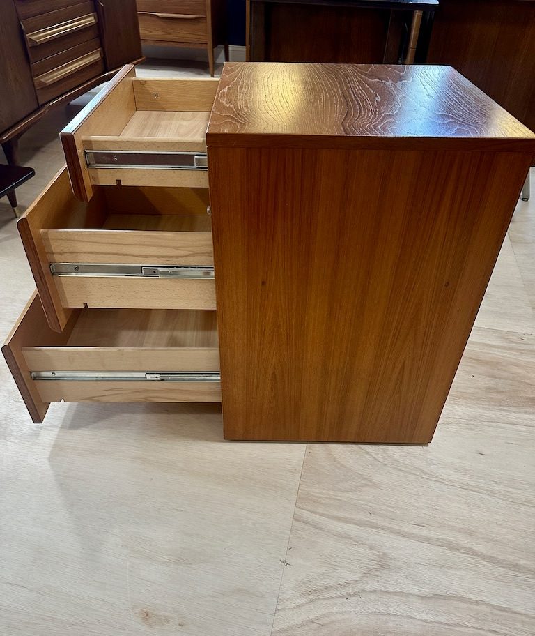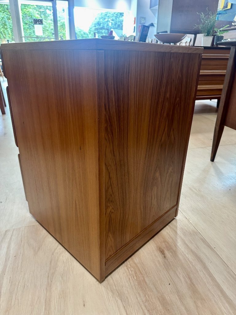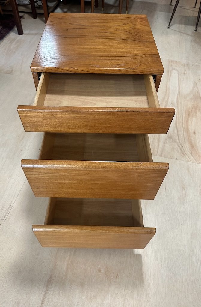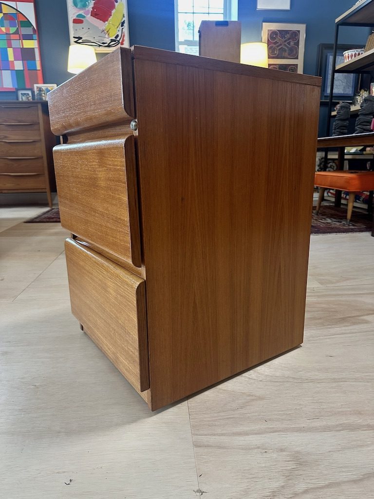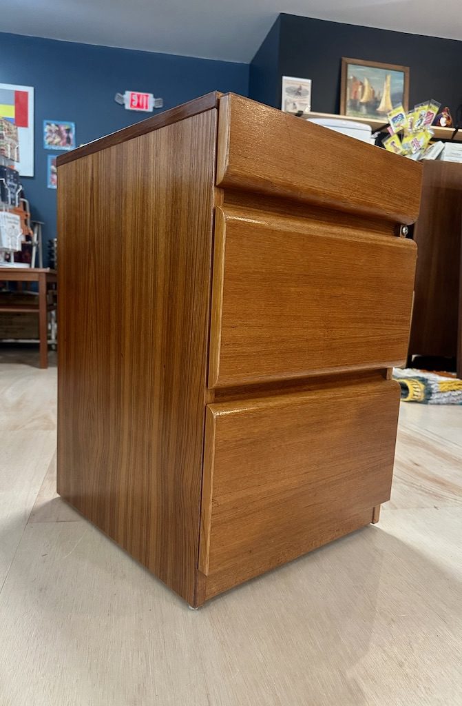 This would make an excellent addition to any office space for additional storage. Would also be great as a bed side table etc. We do not have the key for it but it does have a locking feature. 1970s vintage. Finished on all side. Casters are tucked underneath so they are not visible and cabinet rolls smoothly.