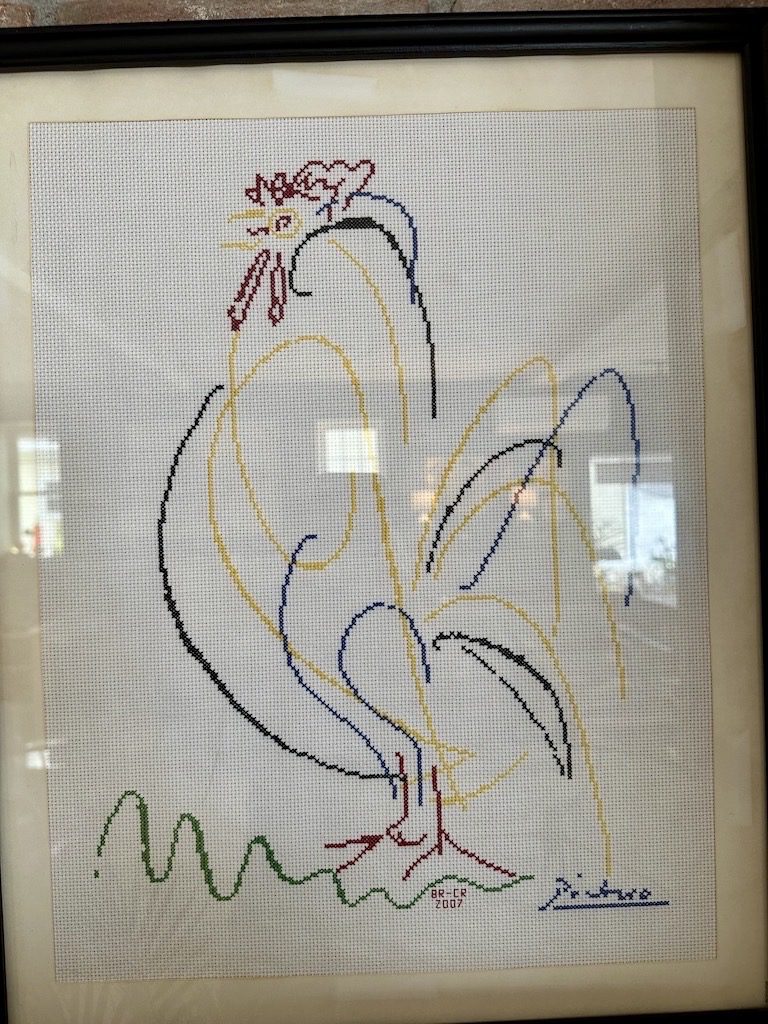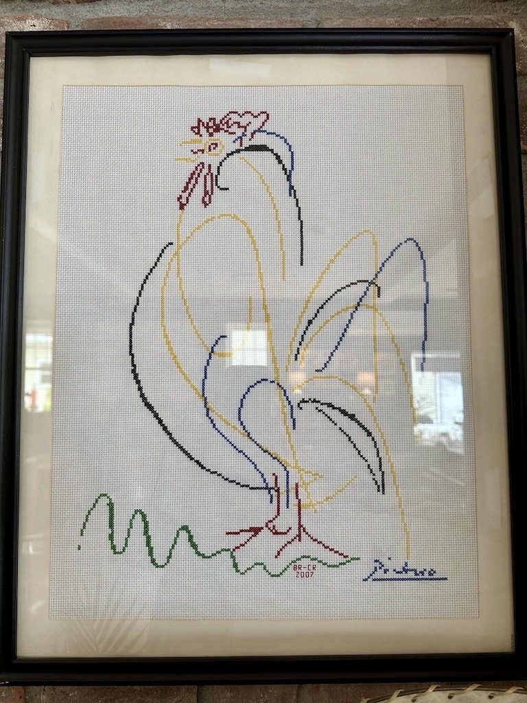 Framed Cross-Stitch of Picasso’s ‘Le Coq’