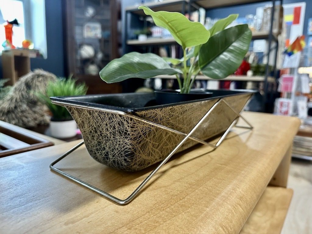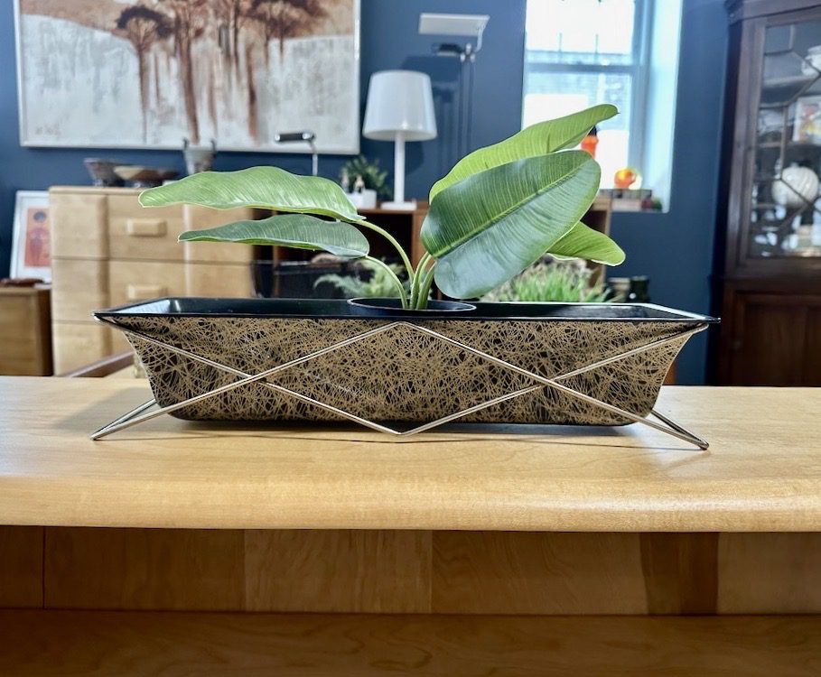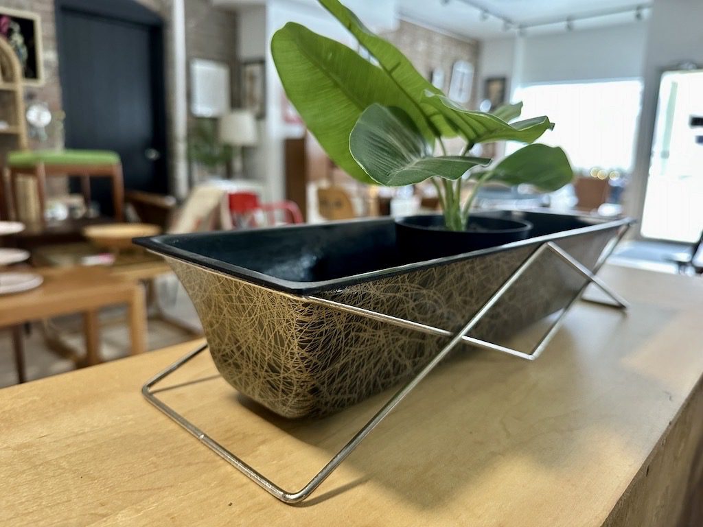 / Mid Century Fiberglass Planter with Wire Stand