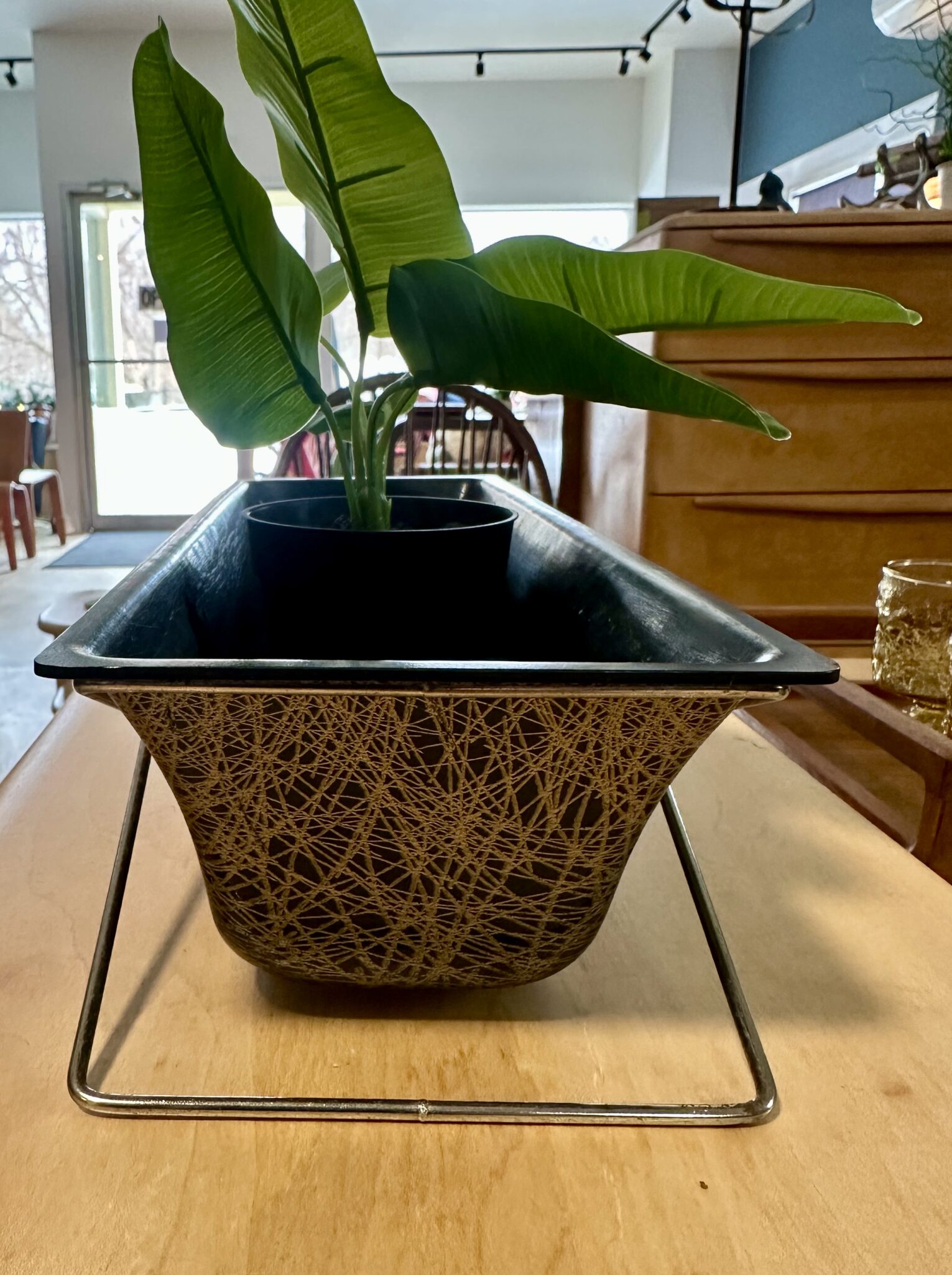 Mid Century Fiberglass Planter with Wire Stand quantity