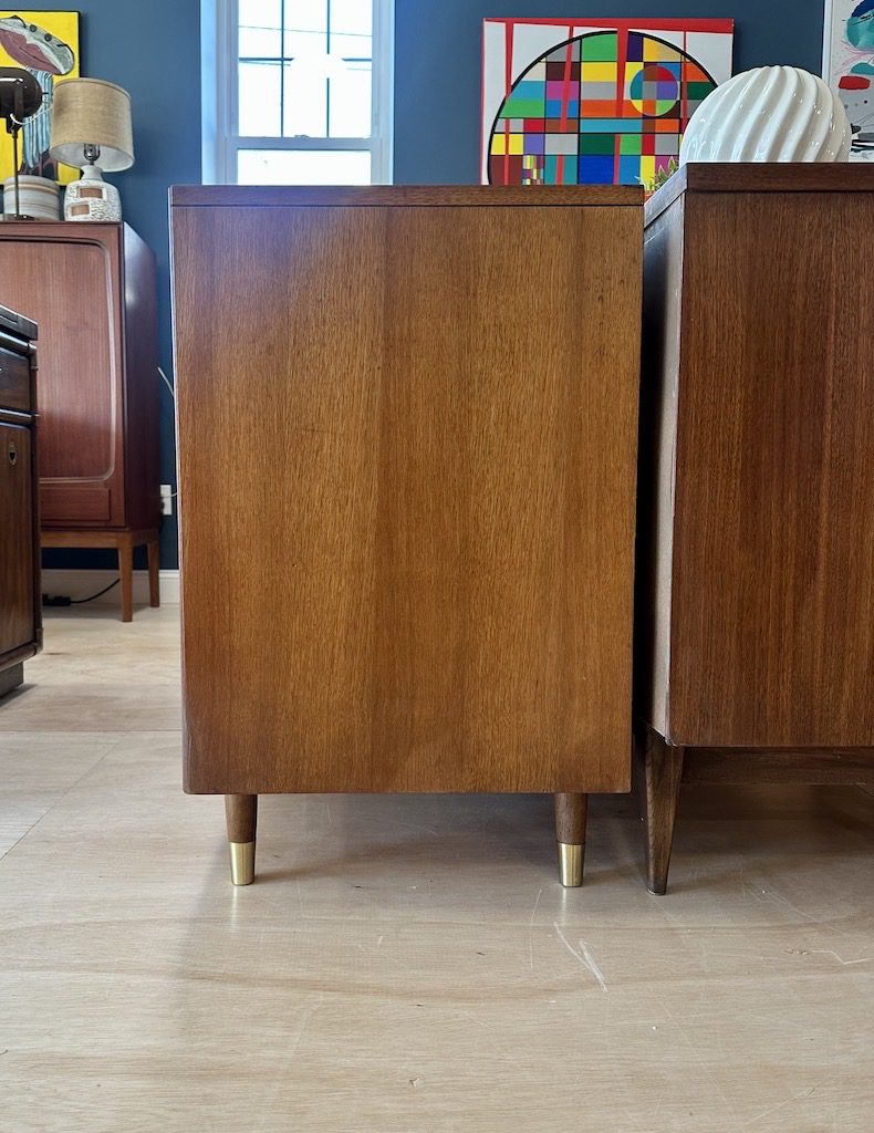 Made of pecan exterior , ash interior and brass plated hardware and capped legs.