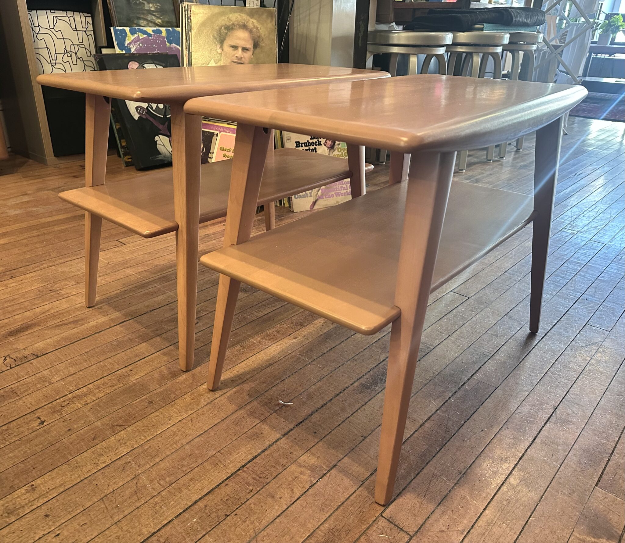 Pair of Restored Heywood Wakefield End Tables – Champagne