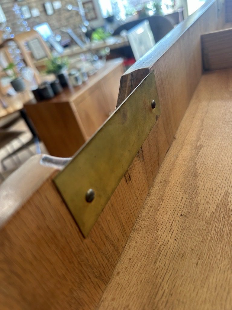 Also features dovetailed drawers and tapered legs and sculpted stretcher.