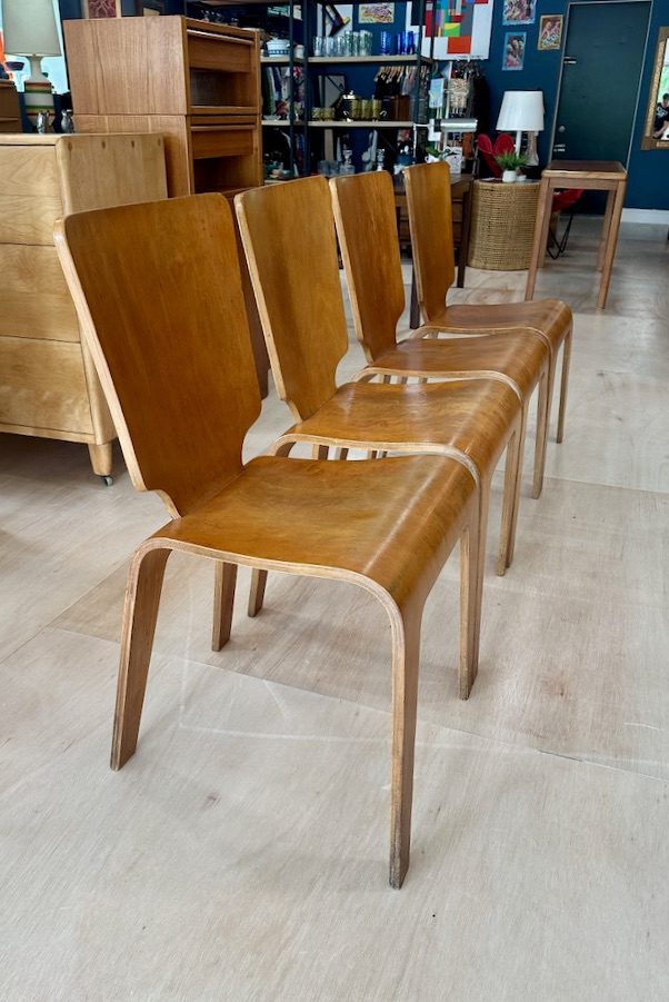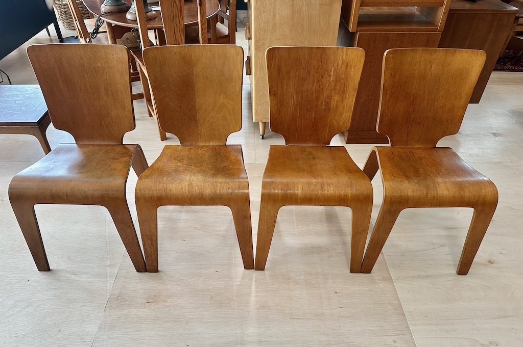 Set of 4 -1940’s Thaden Jordan Bent Plywood Dining Chairs