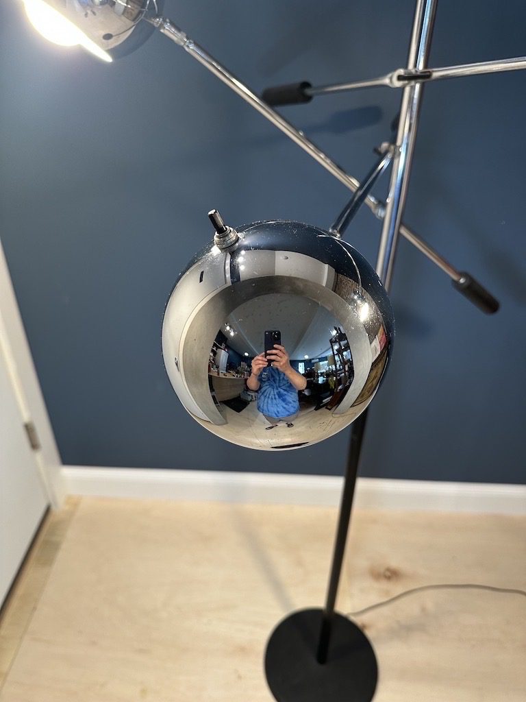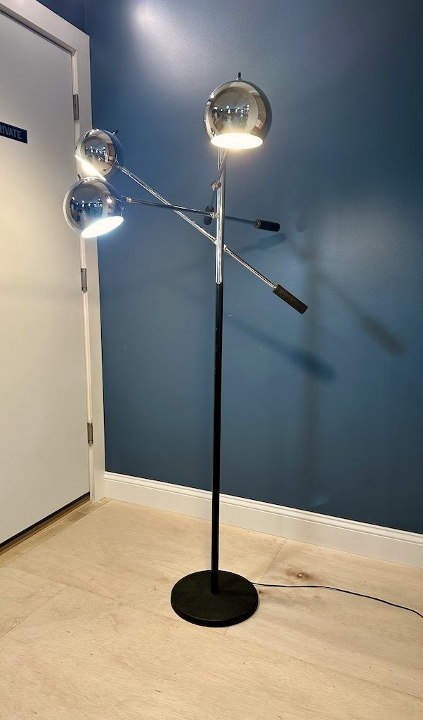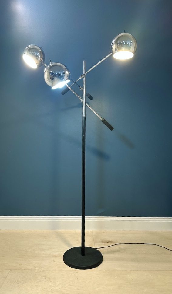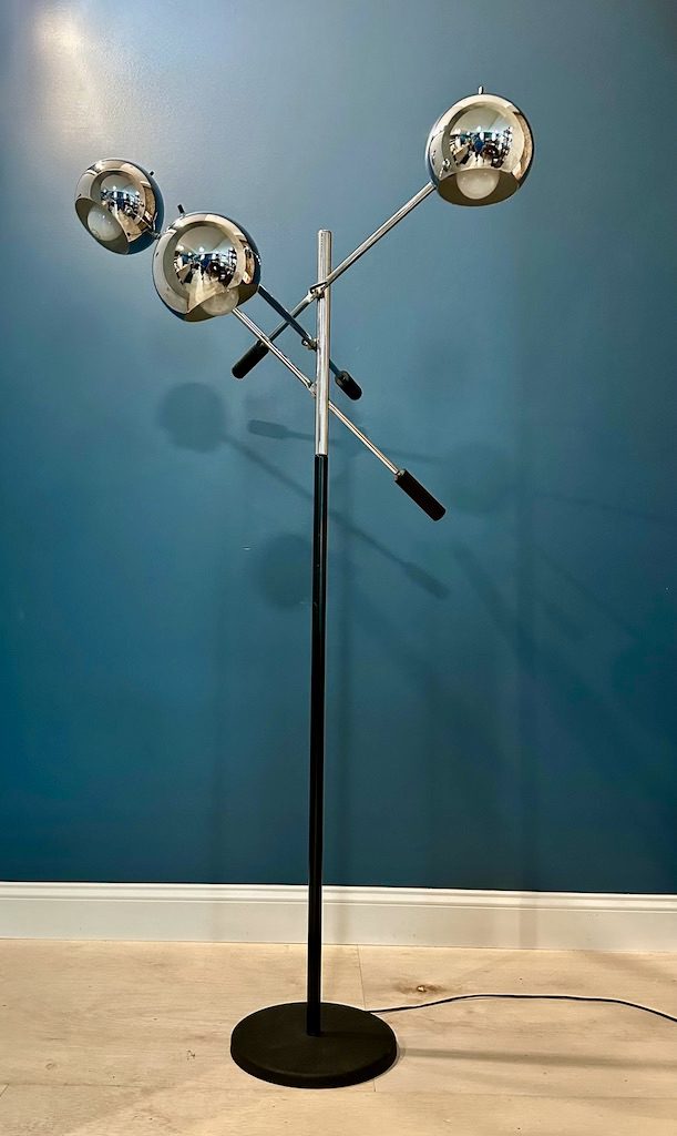Great looking chrome three headed floor lamp in the style of Robert Sonneman.