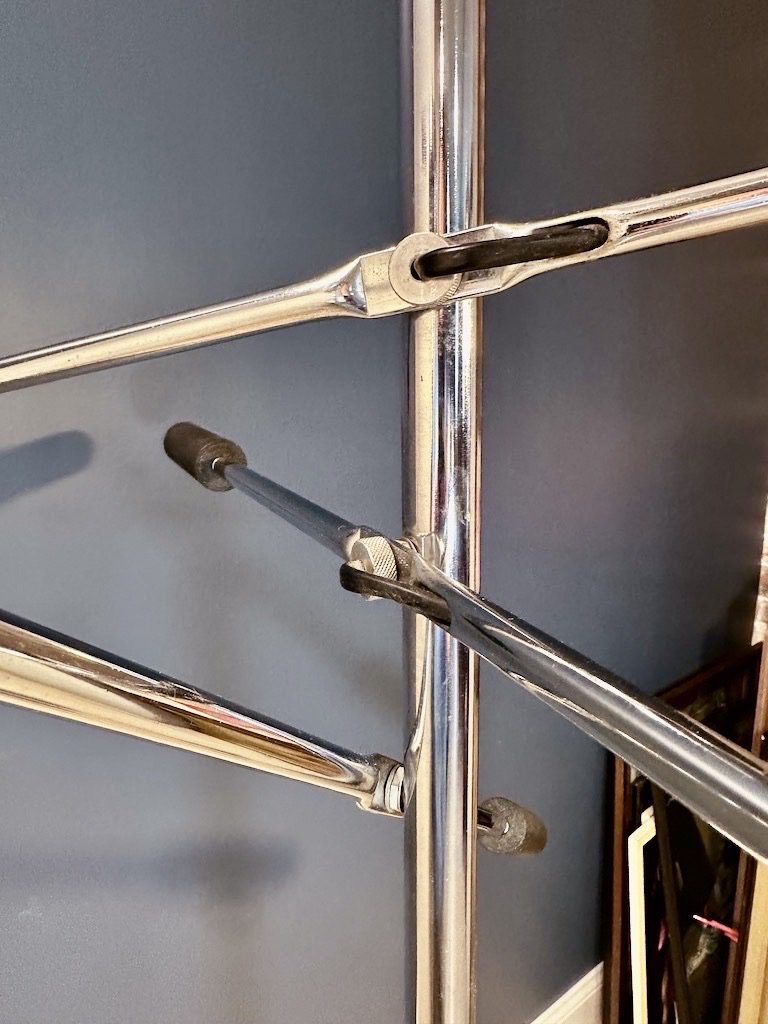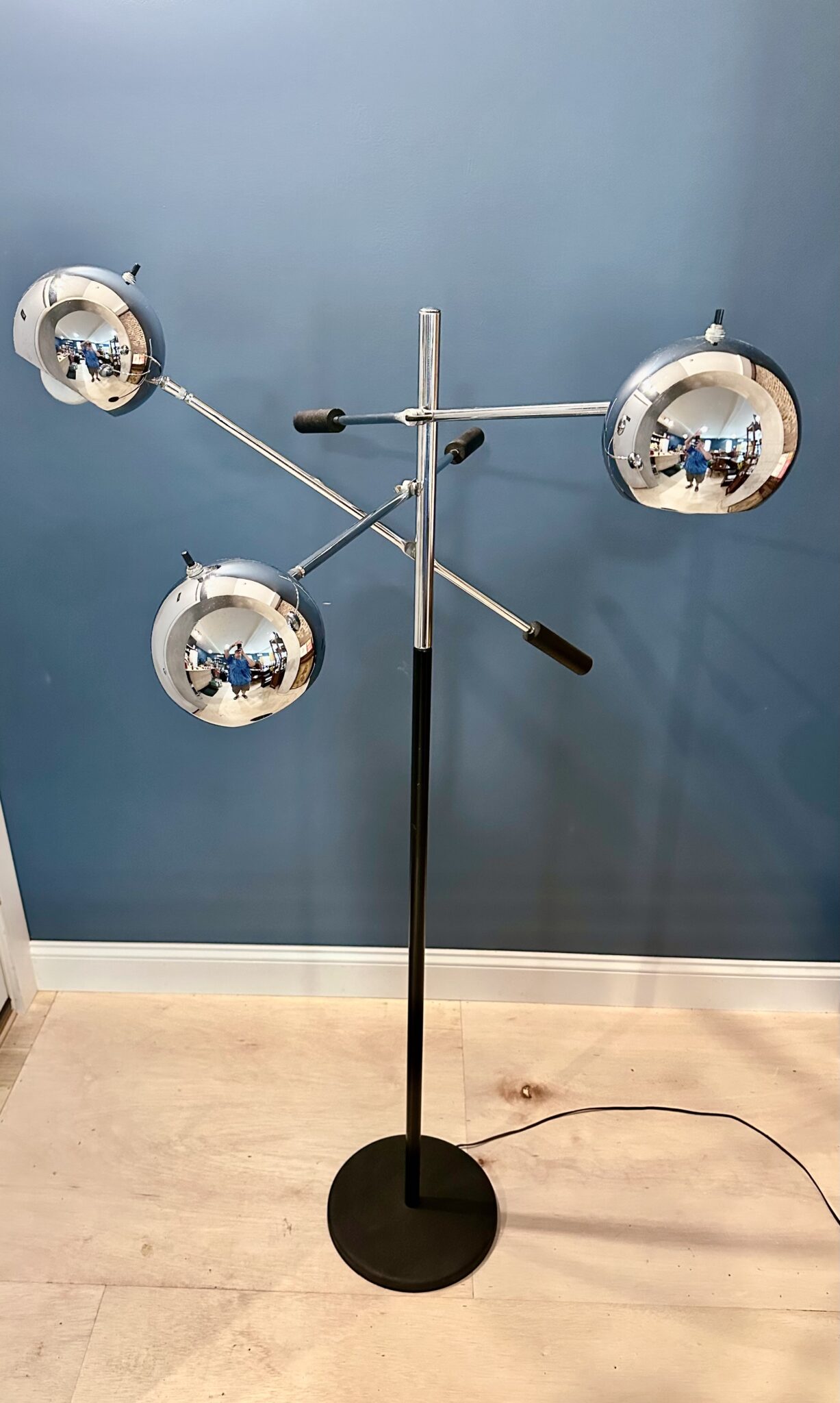 Chrome and Black weighted adjustable arms and pivoting chrome eyeball heads.