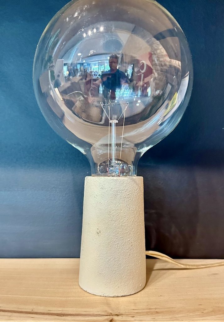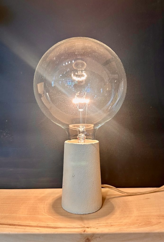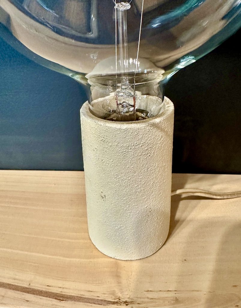 stands 9″ tall with bulb, base is 2.25″W and 3.5″ tall