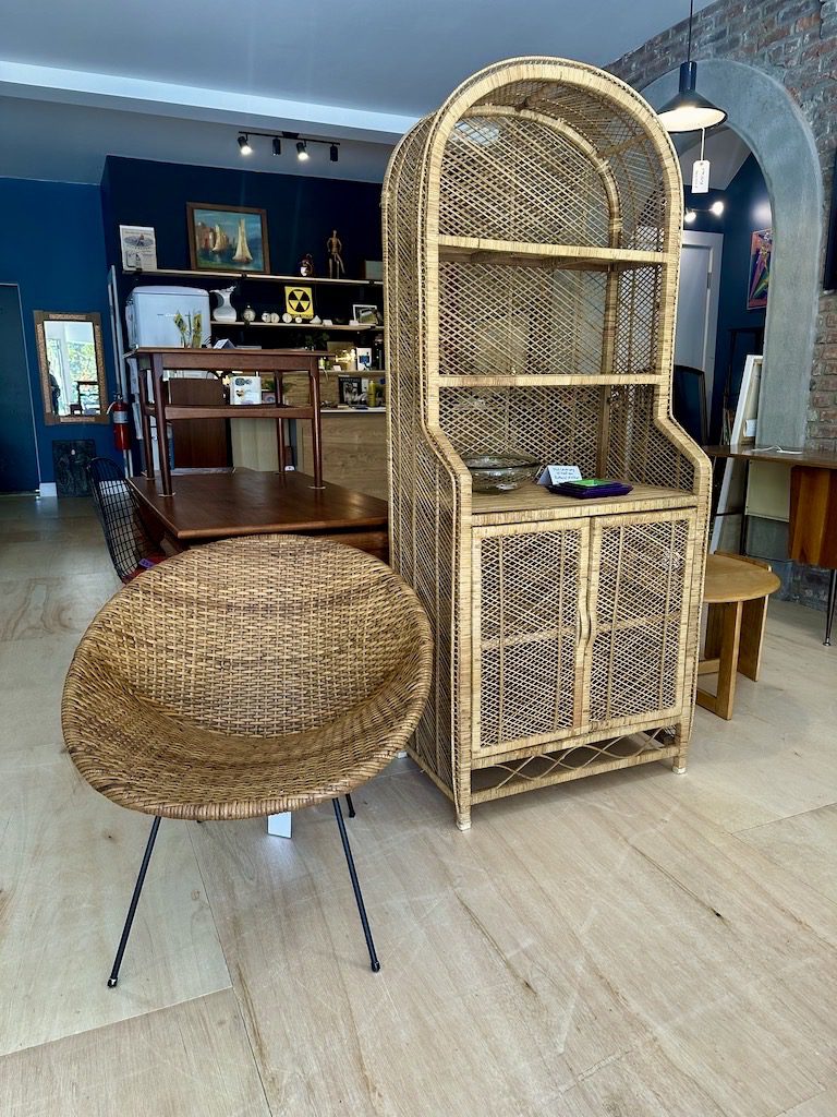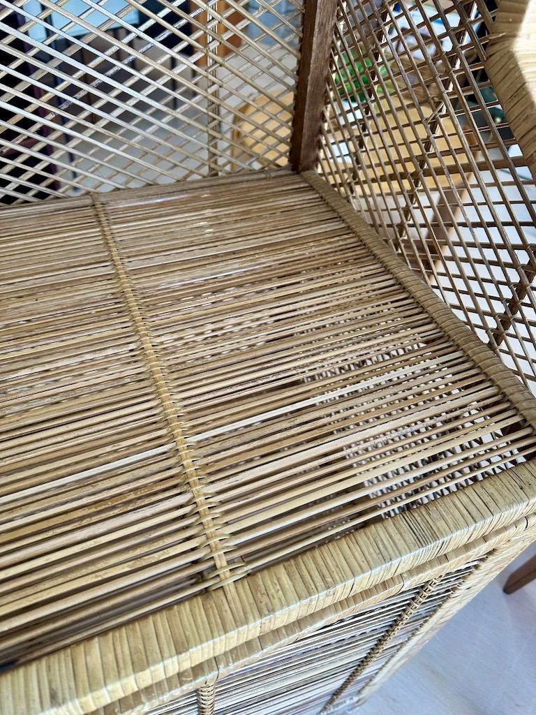 In good vintage condition with some wear from age and use. Most noticeable is on the right hand side (when facing the unit) there are a few broken wicker strands. see photos